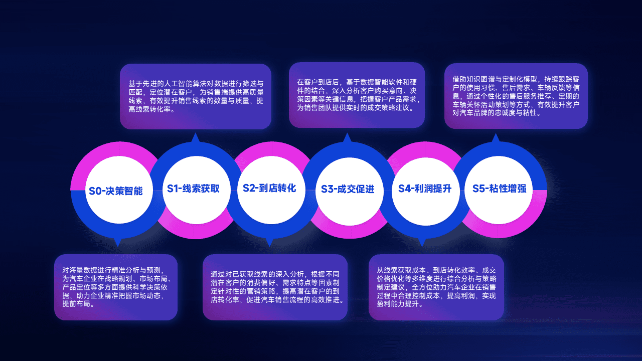 通过拓宽潜在客户来源、、、优化线索分配并提高到店转化率,,,,以增强销售效率。。。同时,,,利用线索数据不断优化分析模型,,有效提升转化率,,,,扩大营销影响力。。。