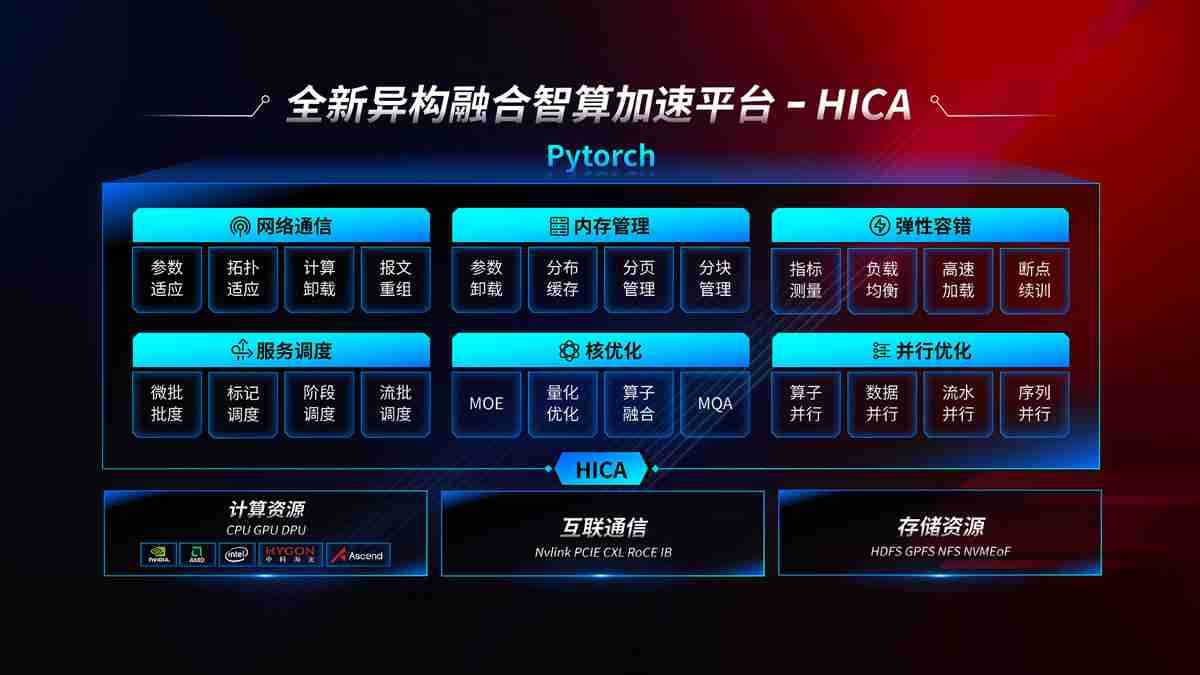 通过自研的服务层、、、、中间适配层、、以及调度编排算法,,,,采用数据并行、、、、模型并行等多种并行方式,,把并行计算任务进行有效的分解,,使其分别由相应的软件栈和算力资源来承接。。。。当GPU资源变化,,HICA可以实时动态调度计算子任务并调整模型拓扑和架构,,以充分聚合各种算力资源。。。。